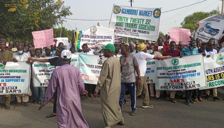 Hundreds of pro-SARS protesters on Tuesday took to the streets of Maiduguri, the Borno State capital demanding the reinstatement of the recently dissolved Special Anti-Robbery Squad.